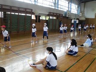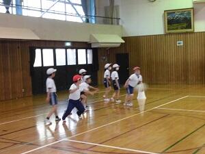 低学年の子たちも、高学年の子たちにサポートしてもらいながら元気いっぱいに新体力テストに取り組んでいました。