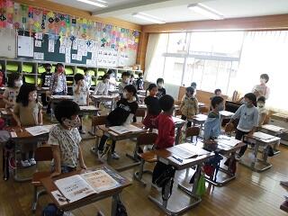 さらに今度は教室の座席を使って、先生の指示した内容が何を指しているのかを考えました。リズムよく授業が進められ、子どもたちは心地よさとともに授業内容をしっかりと理解することができました。
