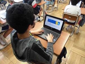 先生が楽しそうに授業を進める姿に感化され、子どもたちも自由な発想で課題に取り組んでいました。数直線をもとにじっくり考える子、式をもとにして答えを導く子などの様々な姿が見られ、楽しく集中して授業に取り組んでいました。