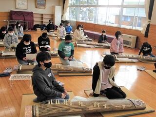 2校時から3校時にかけて、6年生を対象に「お箏教室」が行われました。お箏の先生の指示に従って、子どもたちは姿勢を正しながら箏を演奏しました。箏の音色を近くで聴き、子どもたちは日本の伝統的な和楽器の素晴らしさを感じていました。
