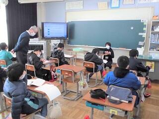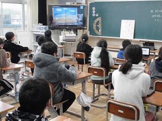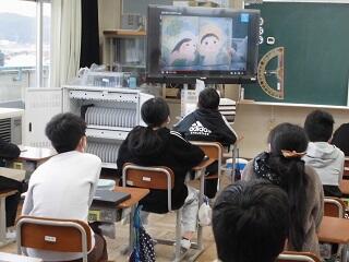 朝の時間を活用して、水曜日は「図書委員による読み聞かせ」をオンラインで行っています。5年生の教室を通りかかると、子どもたちは「読み聞かせ」が映し出されたテレビ画面を集中して見ていました。