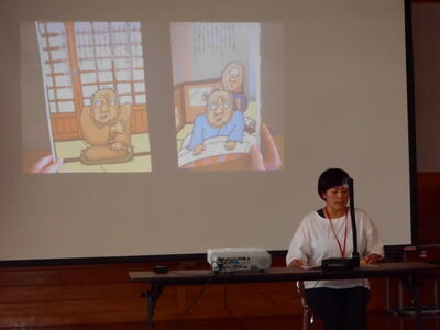 一つ一つの楽しい表現に反応する児童の姿や静かにじっくりと物語を聞く児童の姿が見られ、参加した児童全員が興味を持てる時間となりました。