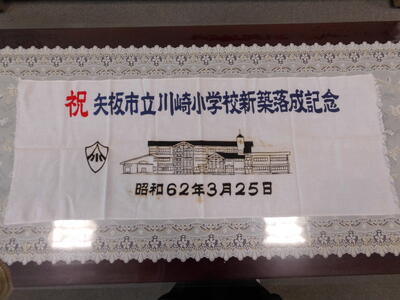 川崎小学校の校舎が改築された昭和62年に配られた手ぬぐいが寄贈されました。