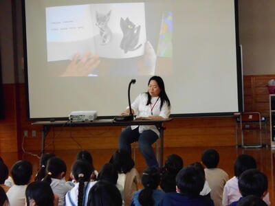 「ふんころがらず」「ばけものつかい」「なまえのないねこ」など児童が興味を持ちそうな絵本の読み聞かせになりました。