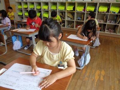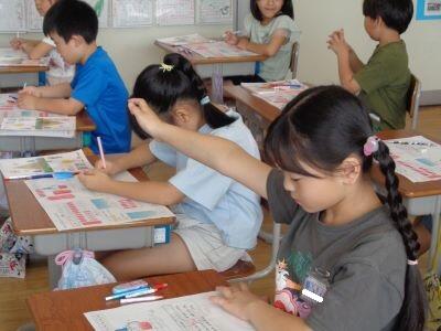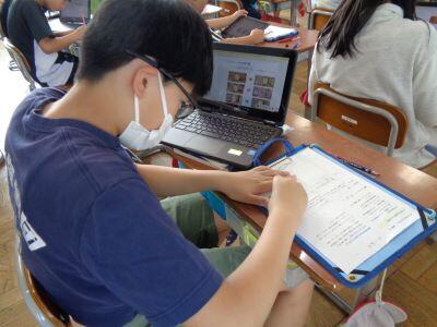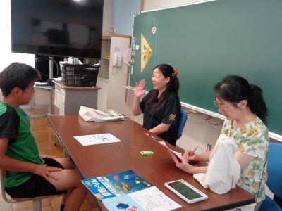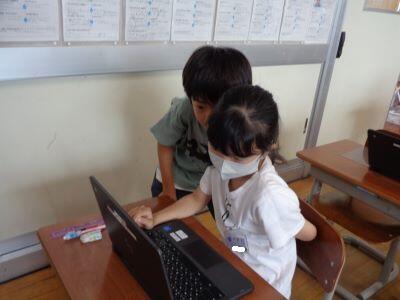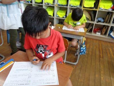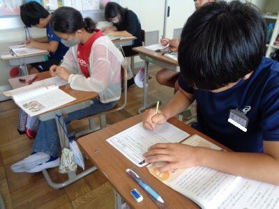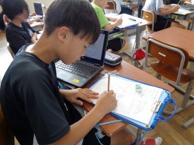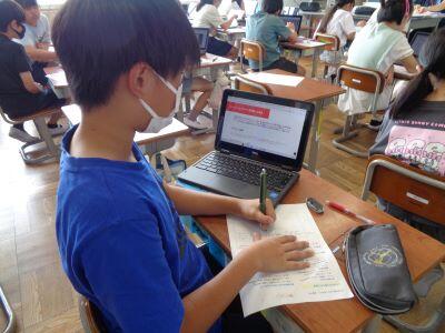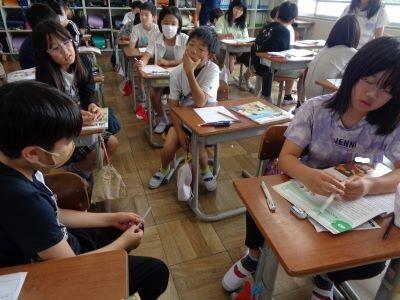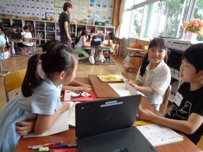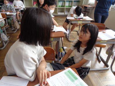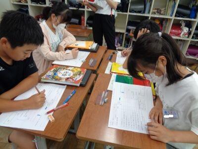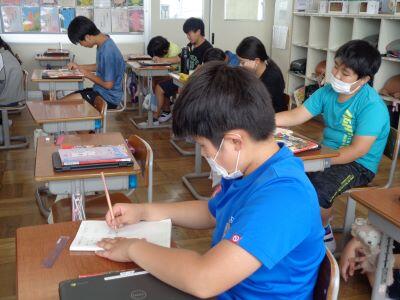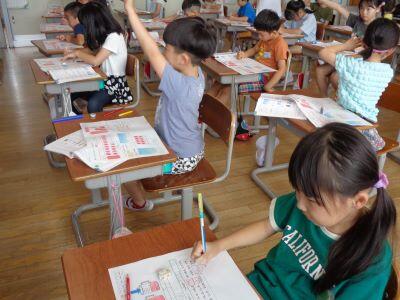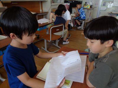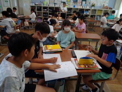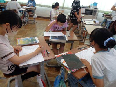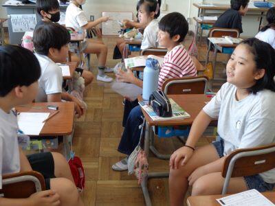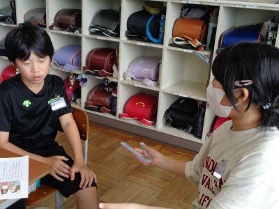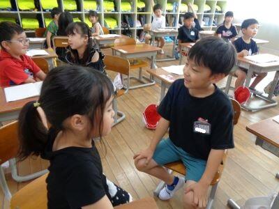 高学年の外国語科では、夏休み前に一人一人がスピーチテストを受けました。自分の思いや考えを、英語で表現していく子どもたち。