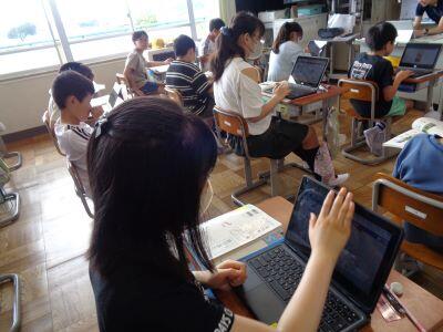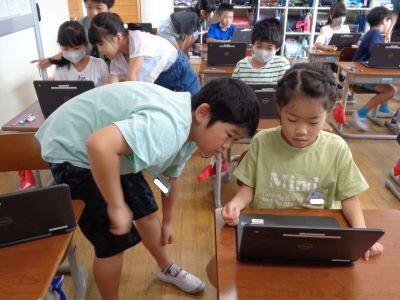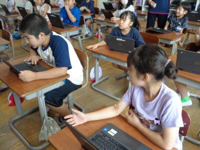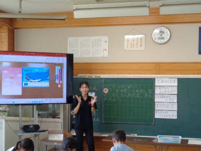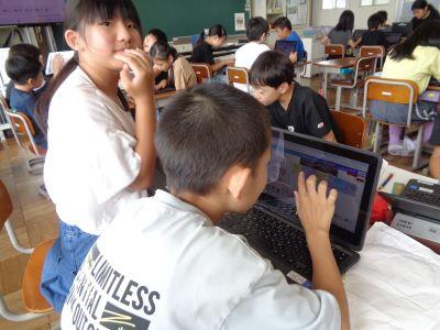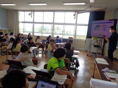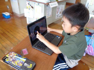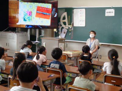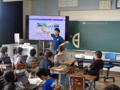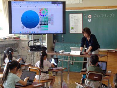 1年生を対象にした「ICT支援員による授業」が行われました。今回の授業では、魚の動きを自分で考えていくプログラミング的な内容を学びました。