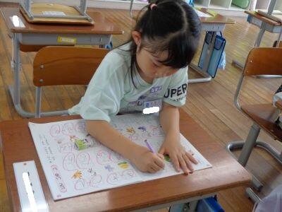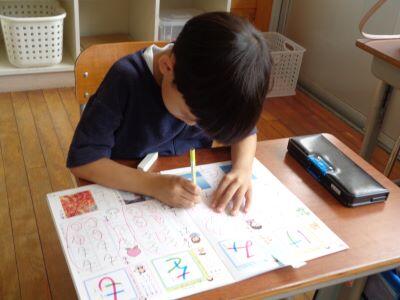 「書き方ノート」に、丁寧な文字をしっかりと書いていますねにっこり