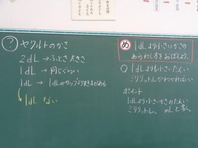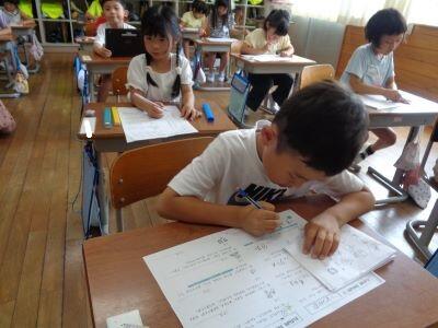 2年算数の授業風景。「もののかさ」の学習単元に入り、1組・2組ともに充実した授業が展開されています花丸