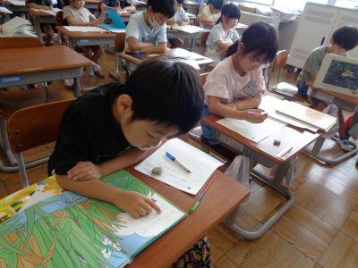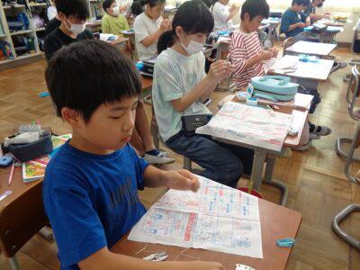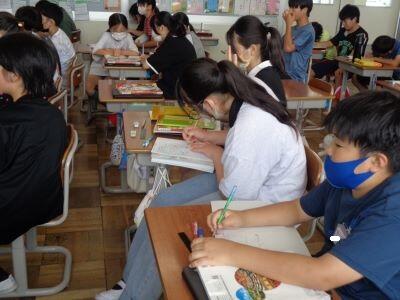 先日の様子。1組は図工の工作単元で、完成図をイメージしながら描き進めていました。2組と道徳の授業で、「平等に接するとはどういうことか」ということを議論しながら考えていきましたキラキラ