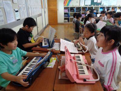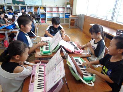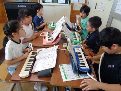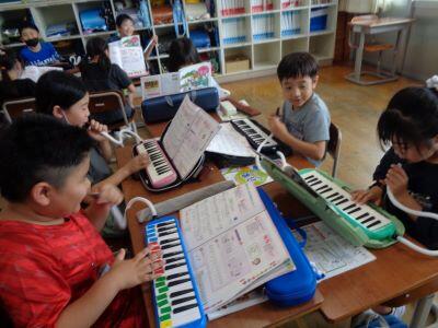 3年生の音楽は「海風きって」という楽曲を学んでいます。この時間は、グループに分かれての演奏練習に取り組みました音楽