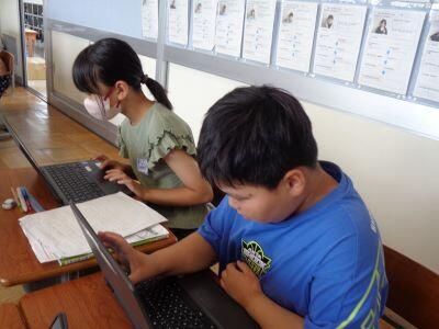 6年生の授業風景。国語の単元「デジタル機器と私たち」で、提案文の書き方を学びました。自分の思いだけでなく、提案理由や根拠などを取り入れながら作成している様子がわかりますね期待・ワクワク