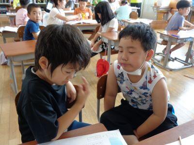 1組・2組ともに、担任の先生の個性を生かして、子どもたちの知的好奇心を高めるよう授業が展開されていますにっこり