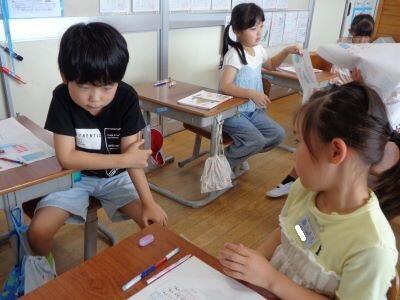 2組では、道徳科の授業が行われていました。「みんなの劇」という教材を通して、一人一人の考えを尊重し協力することの大切さを学びました。