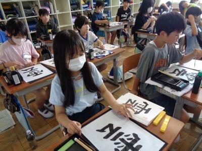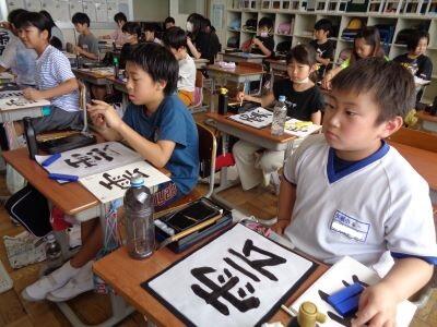 1年教室フロアに足を延ばすと、1組は書写、2組は国語の授業に取り組んでいました。