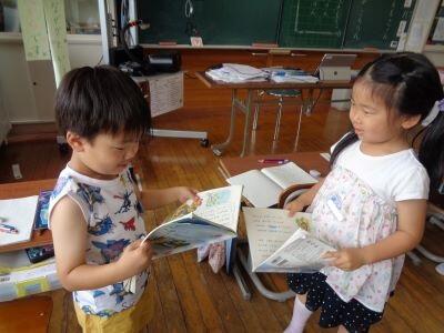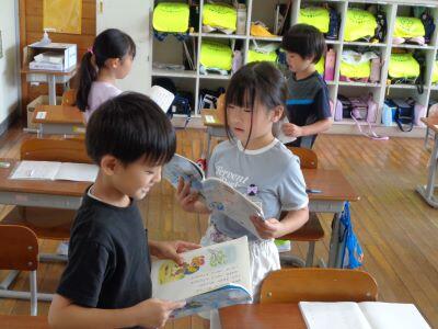 昼休みに、今年度初めてとなる「ボランティアによる読み聞かせ」がありました。4名のボランティアの皆様が来校し、2つの教室で行われました。