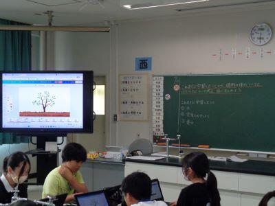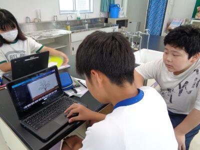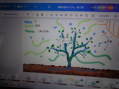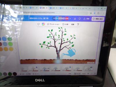 6年理科の授業。単元「植物のつくりとはたらき」を学習した子どもたちは、学習のまとめとして「Canvaのプレゼンテーションツール」を活用して、知識・思考を統括して表現していきました。