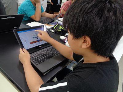 自分で動きを考え、その通りに魚が動くのを体感し、楽しそうな子どもたちの姿が印象的でした笑う