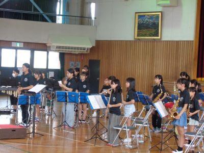 7月16日(水)の昼休みに体育館で音楽集会があり、吹奏楽部が素敵な演奏を披露しました。一つ一つの音を丁寧に奏でようとする吹奏楽部員の頑張りに、全校生も心を傾けて聴き入っている様子でした音楽