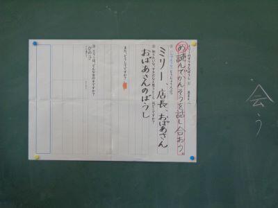 物語文の感想を書き、それを伝え合っています。常に相手意識をもたせた授業展開です。