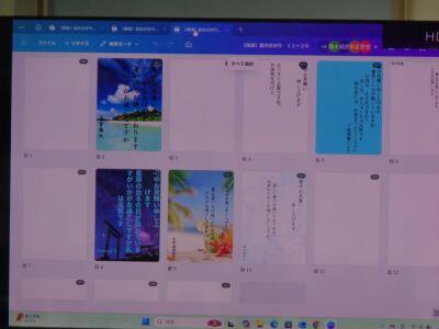 葉書の書き方を学び、夏に合わせて「暑中見舞い」を実際に書きました。タブレット端末のCanvaを有効活用していますキラキラ