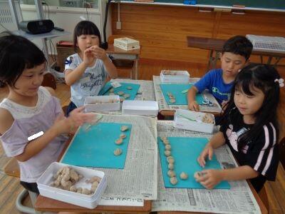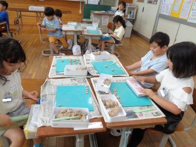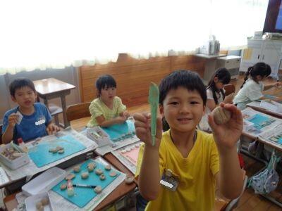 1年生の図工は、粘土で単元「でこぼこはっけん」に取り組んでいます。教室を訪問すると、「校長先生、これ何で作ったと思う?」「上手にできました~」などという声が子どもたちからたくさん聞こえてきました。