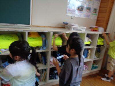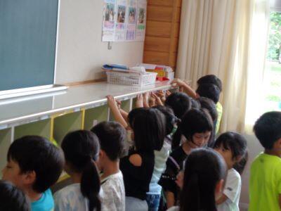 ペンや鉛筆などの"長さを測る道具"を用いて、ロッカーの幅を調べていますキラキラ