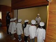 いつもおいしい給食をありがとうございます。調理員さんにあいさつをしてから配膳をします。