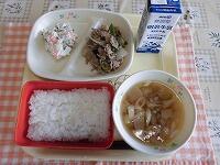 今日の献立は、「ごはん 豚肉の生姜焼き ポテトサラダ のっぺい汁 牛乳」でした。