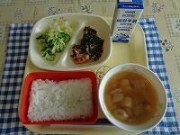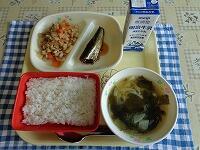 わかめごはんと鶏のから揚げは、子どもたちにとても人気があります。わかめは海藻の仲間です。海藻には食物繊維がたくさん含まれていてお腹のお掃除をしてくれるはたらきがあります。栄養たっぷりのわかめがたっぷり入ったごはんを今日もよく食べていました。