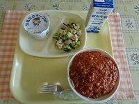 今日の献立は、「ミートソーススパゲティ ツナサラダ ヨーグルト 牛乳」でした。