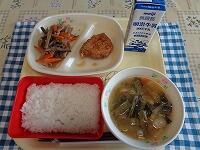 今日の献立は、「ごはん モロの揚げ煮 五目きんぴら かんぴょうのみそ汁 牛乳」でした。
