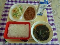 今日の献立は、「ごはん 納豆 ピリ辛肉じゃが 大根のみそ汁 牛乳」でした。