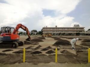 真夏の太陽が照りつける校庭で、除染作業は日々続けられています。