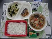 今日の献立は、「ごはん いわしの胡麻味噌煮 きりたんぽ汁 ゆずかつおあえ 牛乳」でした。