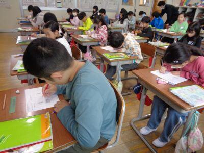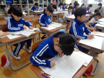 しっとりと、真剣に学習活動に取り組む4年生の子どもたちです