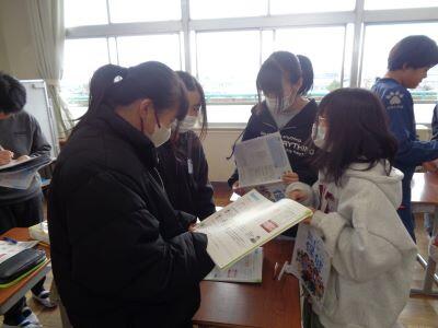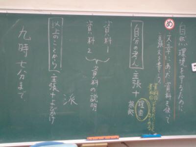 国語科の授業。文章に合った資料を使って、主張文を書いています