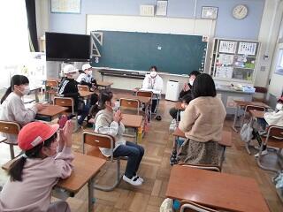 朝の時間を活用して、水曜日は「図書委員による読み聞かせ」をオンラインで行っています。5年生の教室を通りかかると、子どもたちは「読み聞かせ」が映し出されたテレビ画面を集中して見ていました。