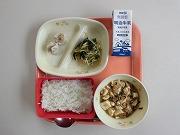 今日の献立は、ごはん シューマイ もやしのナムル 麻婆豆腐 牛乳 です。