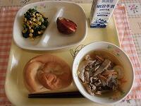 ひじきには、カルシウムや鉄、食物繊維など、成長期の皆さんにとって必要な栄養がたくさん含まれています。歯や骨を丈夫にしたり、貧血や生活習慣病を予防するのに効果的です。髪の毛のつやもよくしてくれます。今日は、にんじんや大豆、油揚げなどと一緒に炒め煮にしました。