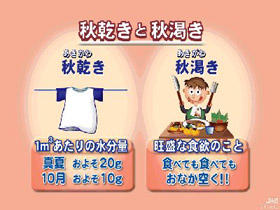 秋乾きは、秋の空気は乾燥していて、物の乾きが早いことを言います。