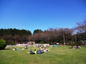 芝生の上には、真っ青な空とポカポカ太陽。お弁当も美味しく感じますね!