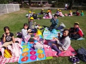 広い芝生の上で、グル―プごとにお弁当を食べました。