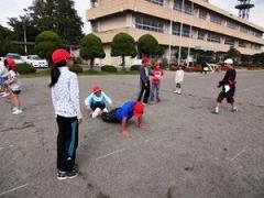 各縦割り班ごとに、ドッジボール、中線ふみ、おにごっこ、へびおに、田んぼの田、バナナおに、かくれんぼなどをして楽しく遊びました。