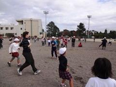↓秋の太陽が照りつける校庭で、駐車場係をするPTA会長さん。御苦労さまでした。