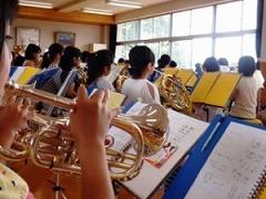 A 4~6年生まで44名でいつも楽しく活動しています。私たちの音楽を聴いてくれる方々の心に響くような演奏ができるように部員一人ひとりが、熱心に練習しています。練習内容は主に、ロングトーンなどの基本練習、パート練習、全体練習をしています。部員の「和」を大切にしながら、心を一つに音楽を奏でることができるよう、チームワークを高めています。部活動を通して音楽の技術を高めるだけでなく、精神的な強さを得たり、あいさつや返事がきちんとできるようにしたりするなど、人として立派に成長できるように先生方の御指導のもと私たちは頑張っています。