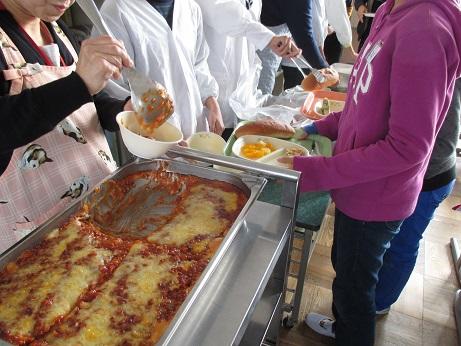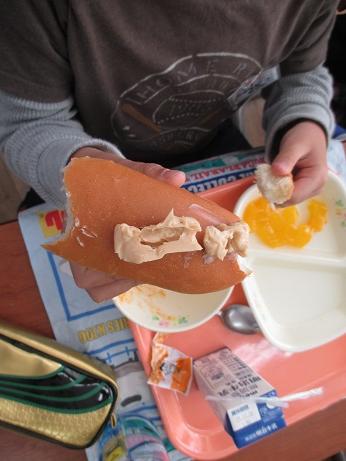 今日の献立は、コッペパン ピーナッツクリーム スパニッシュオムレツ ミートソースグラタン