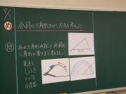分度器やコンパスを使って、合同な図形をかく方法をいろいろ試しながら考えていました。