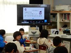タブレットを活用した先進的な取組として、6年2組が社会科の授業を公開しました。 「長篠の戦い」の屏風絵を見て、気づいたことや疑問に思ったことをタブレットに書き込み、クラス全体で共有していきました。