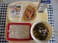 今日の献立は、「麦ごはん 冷奴 豚キムチ炒め チンゲンサイのスープ 牛乳」でした。