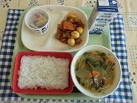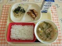 今日の献立は、「ごはん 納豆 インド煮 小松菜のみそ汁 牛乳」でした。